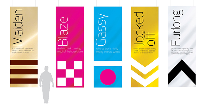 Our approach to design throughout the museum, Palace House and adjacent areas was to create a uniform, fully integrated appearance and language. The visual theme had been based on jockey silks and the colours, patterns and numbering system on saddle blankets.