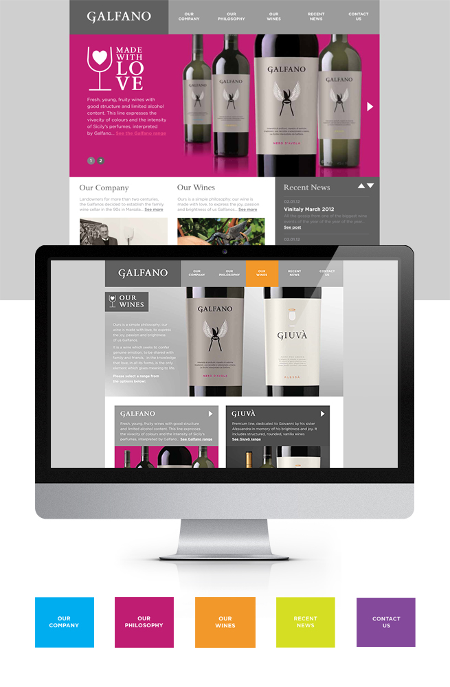 L’essenza del marchio Galfano è racchiusa nelle cesoie per la potatura delle vigne, usate per rappresentare la cura che la famiglia ripone nel territorio e nel vino che produce. Sono impiegati solo ingredienti naturali, senza fermenti o additivi artificiali, e i grappoli d’uva sono recisi a mano per evitare di danneggiare i vigneti. L’identità visiva e le etichette apposte sulle bottiglie erano l’inizio della creazione di questo piccolo ma autentico marchio che avrebbe portato all’attenzione generale la filosofia alla base del Galfano.