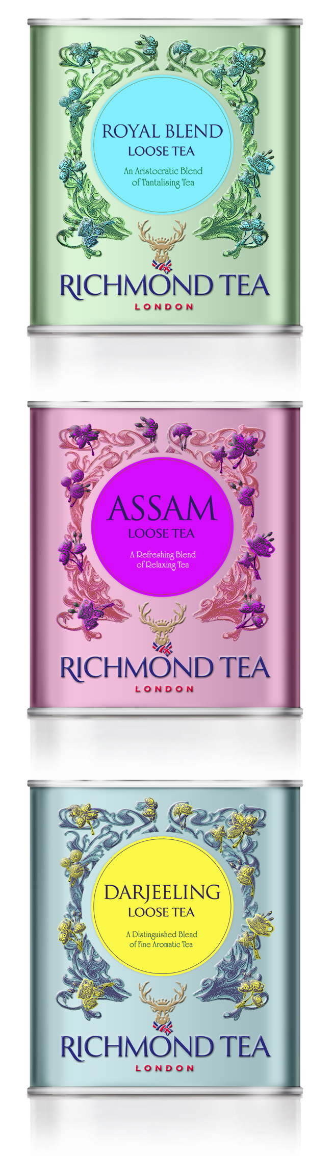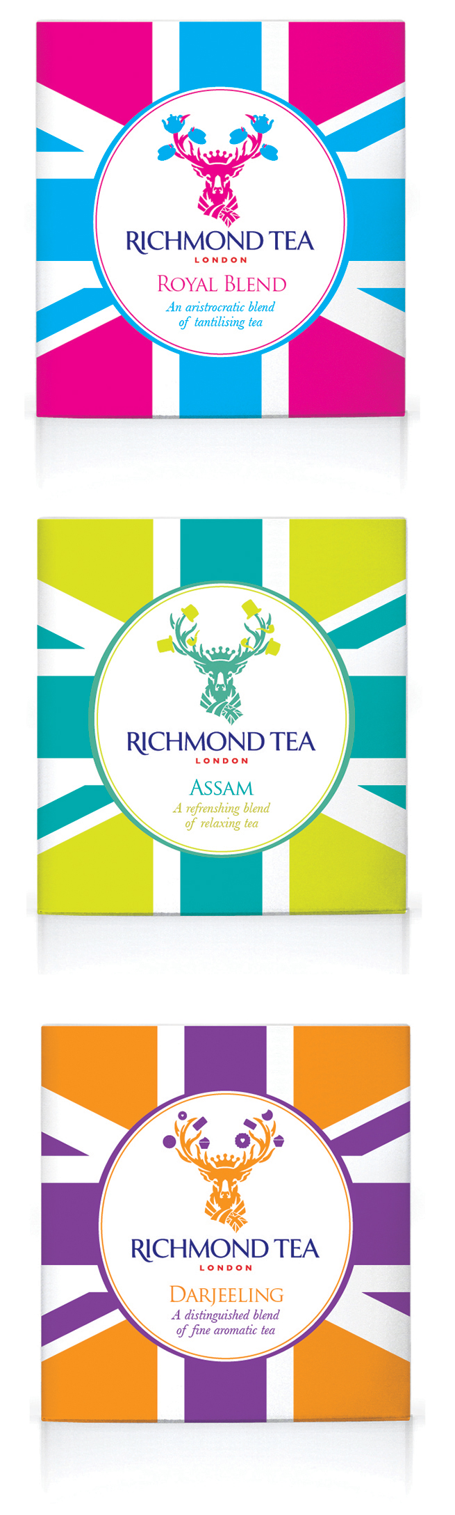 Come new entry del mercato, l’azienda ha visto l’opportunità di mettere i suoi prodotti al centro dell’attenzione ponendo l’enfasi su un design contemporaneo e peculiare. Siccome l’azienda ha sede a Richmond, nei pressi del Richmond Park, sembrava naturale cercare le connotazioni locali che riecheggiassero l’idea dell’essere inglesi. Il cervo maestoso è un simbolo araldico tradizionale, oltre ad essere un abitante molto amato del Parco Reale di Richmond, nell’area sud-ovest di Londra.