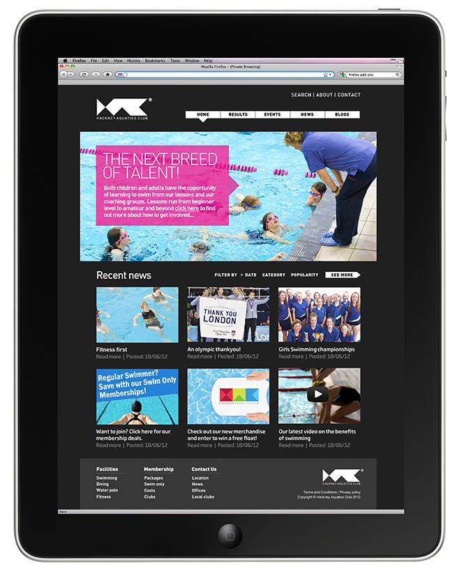 Hackney Aquatics Club, o HAC, è la nuova incarnazione del precedente Clissold Swimming Club, una struttura locale di vecchia data che forniva alla vicina comunità corsi addestrativi ed eventi legati agli sport acquatici. Per definire il cambiamento erano necessari un nuovo nome e un nuovo logo. Un abitante del luogo e appassionato di sport, tale Marcello Minale, si è offerto volontario per assumersi il progetto di creazione di un’immagine aggiornata per questo famoso club, dove i suoi figli frequentano i corsi di nuoto.