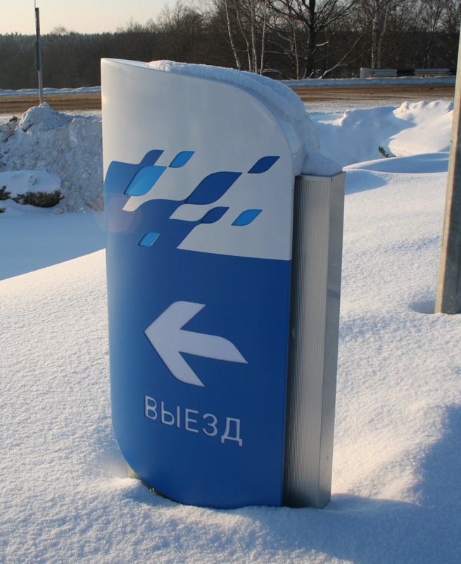 A causa delle dimensioni della Russia, tutte le nostre proposte di design dovevano fare i conti con il problema della logistica. La costruzione modulare operata sui diffusori, sui rivestimenti delle colonne, sui totem e sulla tettoia ha semplificato la loro implementazione.