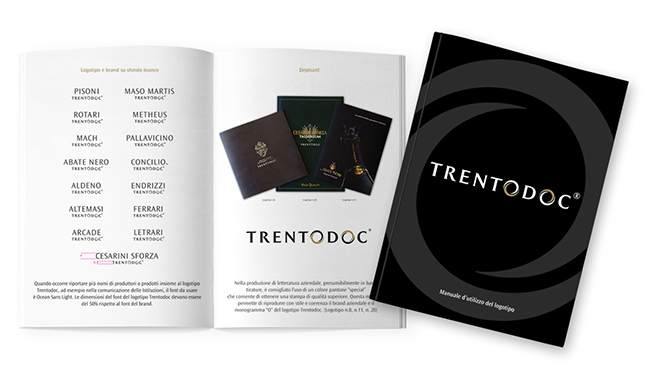 Il nome Trentodoc è la congiunzione delle due parole che formano l’appellativo originario, scelta per creare un nome di marchio che potesse essere registrato e protetto. Il nome suona autorevole, è facile da pronunciare in diverse lingue e mantiene un legame forte con il Trentino, sua regione di provenienza, e con la denominazione di qualità DOC. Il trattamento grafico del nome del marchio, con la sua enfasi su due “O” in rotazione, insieme allo slogan “Remuage italiano”, riflette il processo di vinificazione e posiziona Trentodoc come un prodotto italiano di gamma alta.