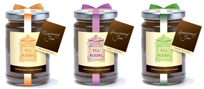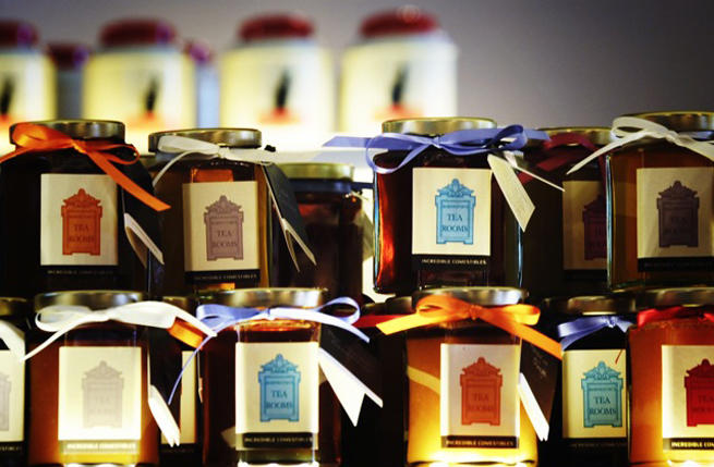 Anche le copertine dei menù e la pubblicità a mezzo stampa riprendevano il tema dell’eccentricità inglese. Nel negozio di articoli da regalo è disponibile una nuova gamma di merci, che include tè confezionati in modo accattivante e marmellate fatte in casa, sottopiatti decorati, borse shopper, grembiuli, canovacci da cucina e barattoli di tè, tutti caratterizzati da un design di stile moderno con un tocco d’epoca vittoriana.